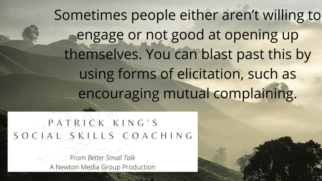 Sometimes people either aren’t willing to engage or not good at opening up themselves. You can blast past this by using forms of elicitation, in which you put forth a topic or question in a way that a person will feel compelled to engage or elaborate.