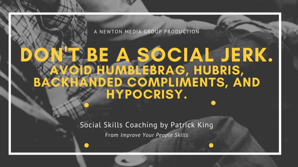 Recent research on the topic of social jerks by Janina Steinmetz suggests that many of us perform several actions that make us look like a jerk deliberately due to a mistaken belief that it makes us look better. This implies that our “best behavior” might be exactly what’s making other people feel like we’re jerks. We’ll go over the four behaviors the study pinpoints as behavior of jerks and how to avoid each of them. Backhanded compliments. Humblebrag. Hypocrisy. Hubris.