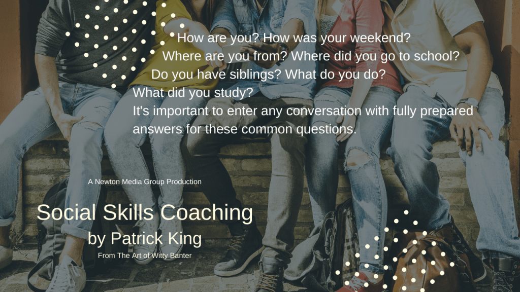 By being aware of the most common questions and coming up with maybe three interesting stories or opening lines for each, you’ll go a long way in becoming a better conversationalist.